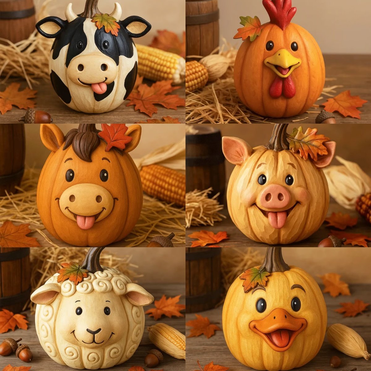 🍂🎃 Bring the barnyard fun to your harvest home! These adorable farm animal pumpkins turn your fall table into a cozy farmhouse festival.
